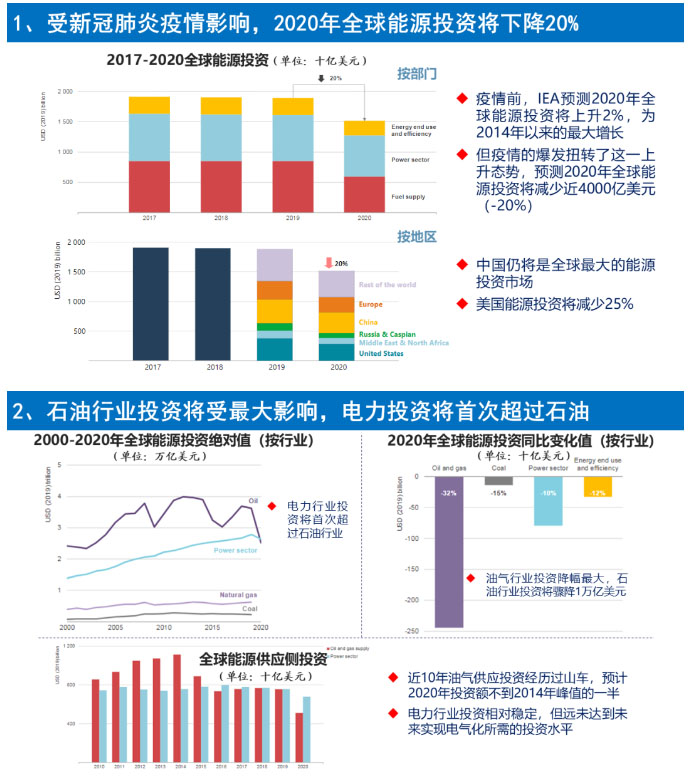 5月27日,國(guó)際能源署(IEA)發(fā)布《世界能源投資報(bào)告2020》,分析了新冠肺炎疫情對(duì)全球能源投資的影響,并預(yù)測(cè)了2020年的能源投資情況,主要內(nèi)容如下: