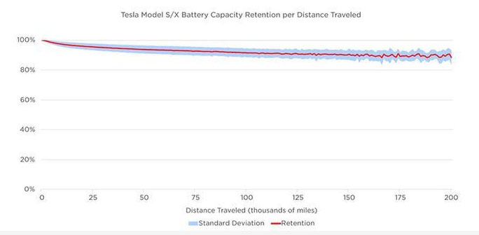 根據(jù)外媒Inside EVs報(bào)道,近日,特斯拉官方公布了旗下Model S和Model X車型動(dòng)力電池容量衰減的曲線圖。