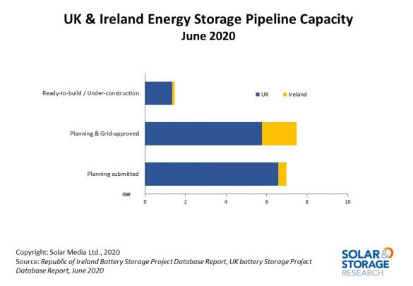 英國和愛爾蘭儲能市場計劃部署的電池儲能系統(tǒng)裝機(jī)總?cè)萘窟_(dá)到數(shù)GW