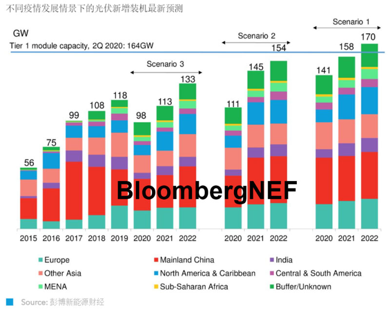 疫情出現(xiàn)多波反彈且其他因素不利的情景下的2020年新增光伏裝機(jī)預(yù)測