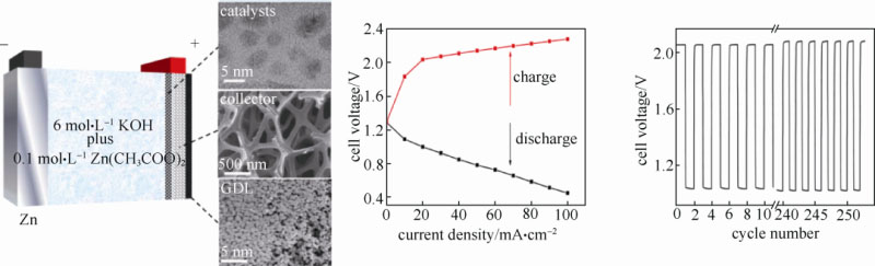 圖7 負(fù)載Ag-Cu催化劑的泡沫鎳雙功能電極在電化學(xué)可充電鋅-空氣電池中的應(yīng)用