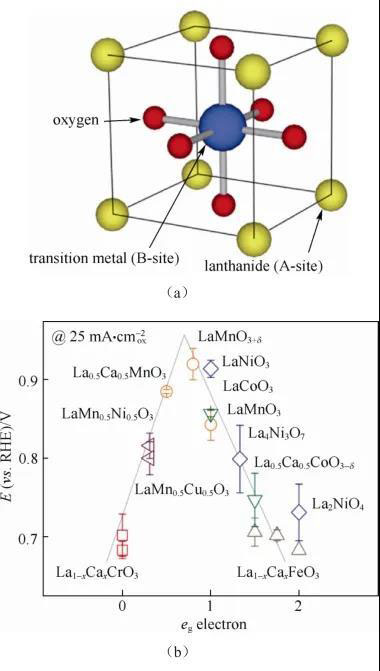 圖2 鈣鈦礦結(jié)構(gòu)及其氧還原活性與電子填充數(shù)關(guān)系