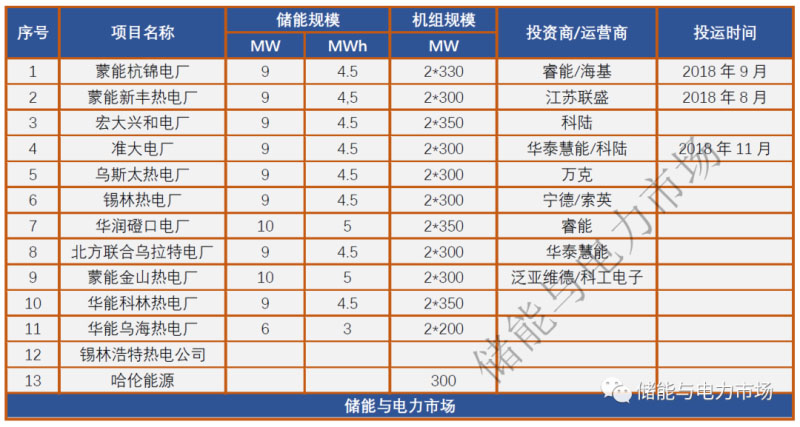附:蒙西儲能聯(lián)合火電機(jī)組調(diào)頻項(xiàng)目列表。