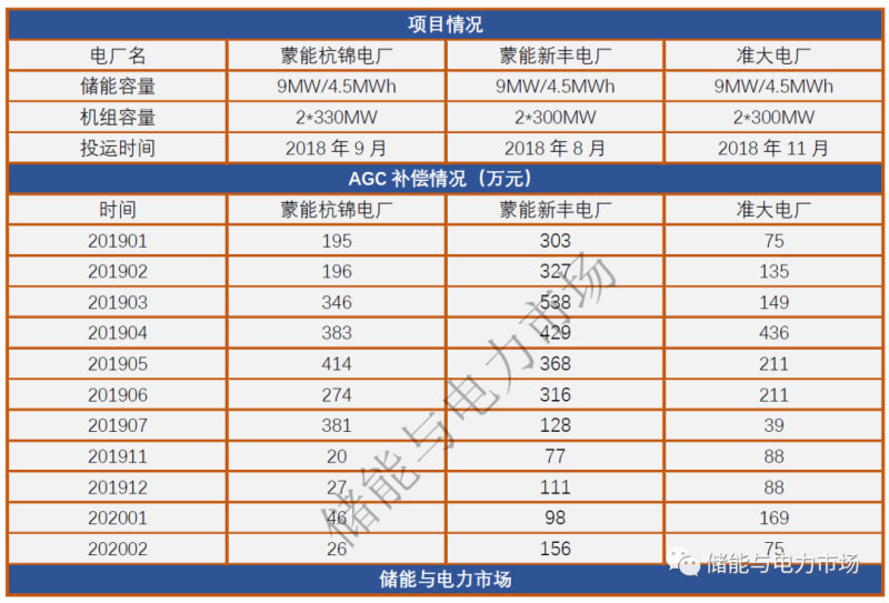 目前蒙西電網(wǎng)處于投運(yùn)狀態(tài)的儲能聯(lián)合火電調(diào)頻項(xiàng)目為 :蒙能電廠、新豐電廠、準(zhǔn)大電廠。他們的收益情況如下表。
