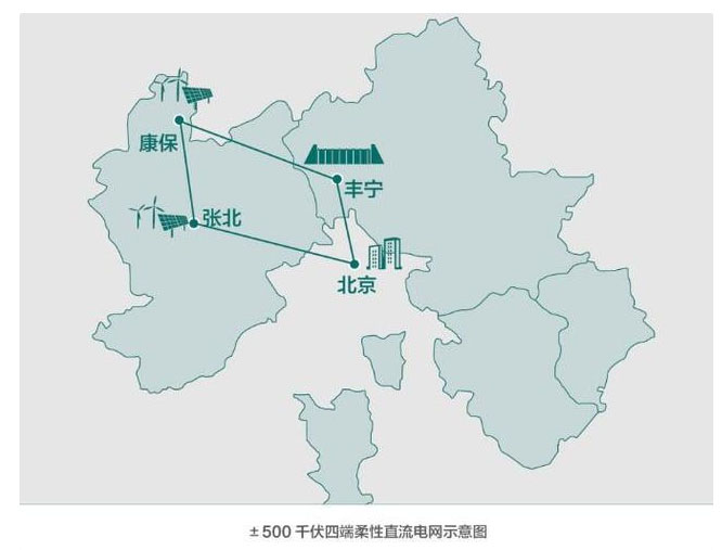 6月25日,±500千伏張北柔性直流電網(wǎng)試驗示范工程四端帶電組網(wǎng)成功。張北地區(qū)的清潔能源發(fā)電成功接入北京電網(wǎng),送至北京冬奧會的各個場館。