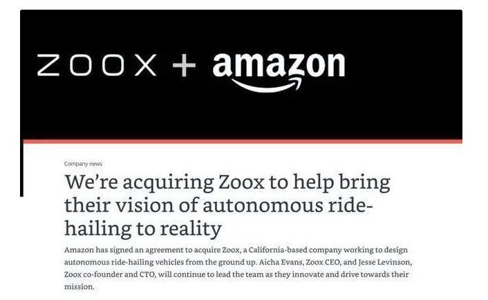 6月26日,《金融時報》報道稱亞馬遜以12億美元的價格收購了自動駕駛領域的明星公司ZOOX。
