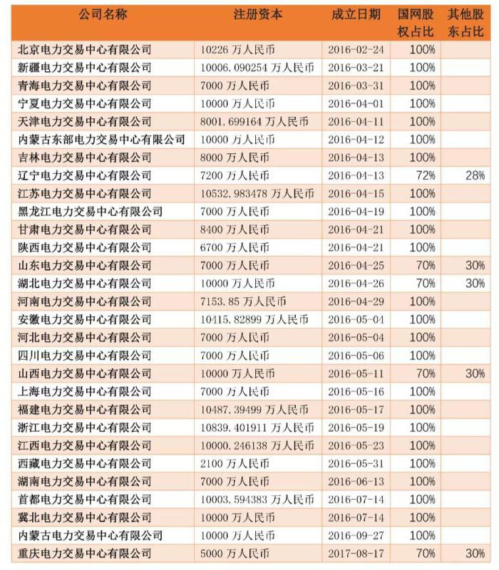 表1:截至6月29日國網(wǎng)所屬各省份電力交易中心股權情況