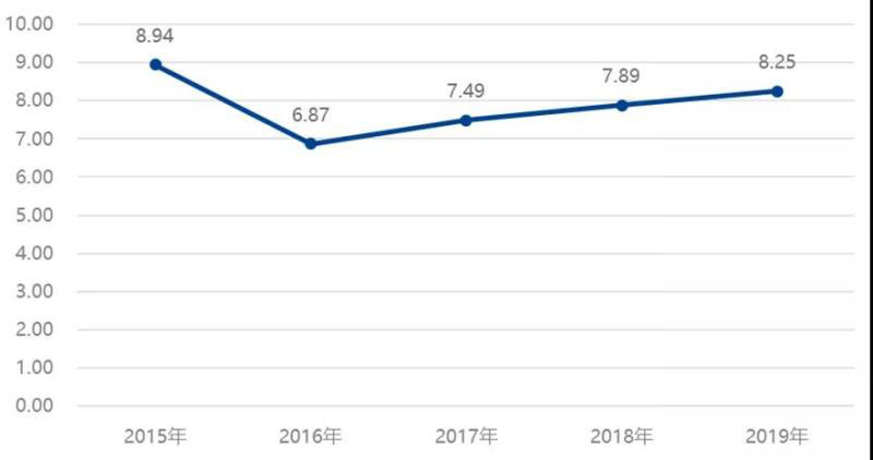 圖3 2015~2019年新能源汽車(chē)增量與公共充電樁增量比值變化