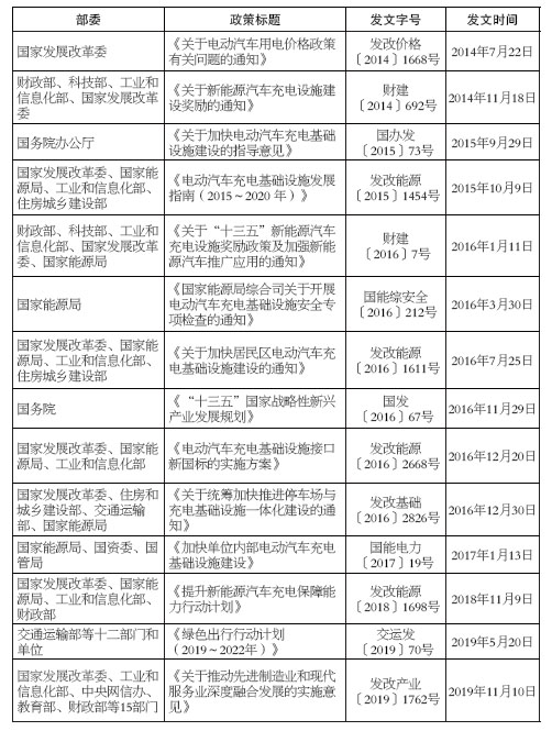 表1 涉及電動(dòng)汽車(chē)充電設(shè)施政策匯總