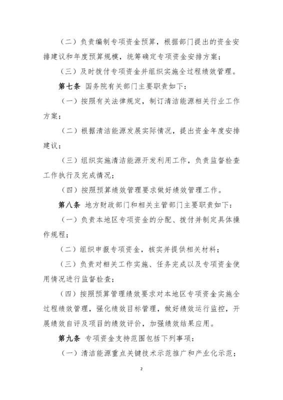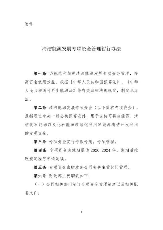 清潔能源發(fā)展專項資金(以下簡稱專項資金),是指通過中央一般公共預(yù)算安排,用于支持可再生能源、清潔化石能源以及化石能源清潔化利用等能源清潔開發(fā)利用的專項資金。專項資金實行專款專用,專項管理。