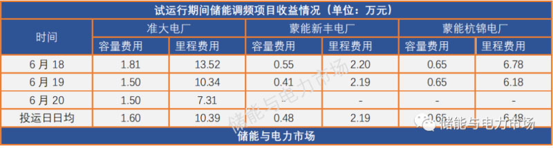 截至試運行日,蒙西電網(wǎng)中,對外宣布已投運的儲能聯(lián)合火電調(diào)頻項目有三個:準大電廠、蒙能新豐電廠、蒙能杭錦電廠,這三個項目的試運行情況如下表。