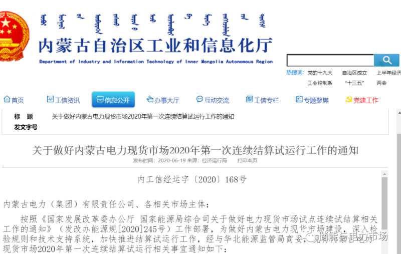 6月19日,內(nèi)蒙古工信廳發(fā)布了《關(guān)于做好內(nèi)蒙古電力現(xiàn)貨市場2020年第一次連續(xù)結(jié)算試運行工作的通知》,計劃: