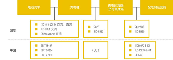 圖2 | 國內(nèi)外車-樁-網(wǎng)間信息交互標(biāo)準(zhǔn)對比
