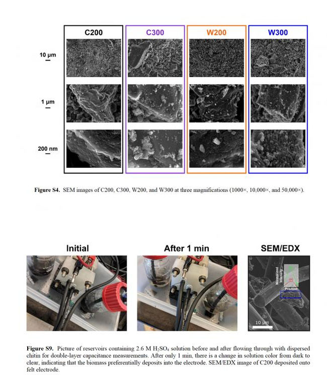 研究團(tuán)隊(duì)將甲殼素沉積在氈狀電極上,并將其作為釩氧化還原流電池的一部分進(jìn)行測試。測試結(jié)果顯示峰值功率密度改善了~100 mW cm–2。性能的提升固然可喜,但該團(tuán)隊(duì)同樣對(duì)該設(shè)計(jì)的可持續(xù)發(fā)展性質(zhì)感到興奮。