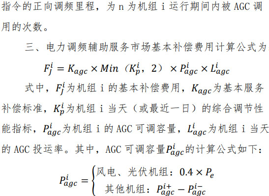 第二十三條 江蘇電力調(diào)頻輔助服務(wù)市場補(bǔ)償費(fèi)用按日統(tǒng)計(jì)、按月結(jié)算,分為基本補(bǔ)償和調(diào)用補(bǔ)償兩類。在江蘇電力調(diào)頻輔助服務(wù)市場獲得調(diào)用的機(jī)組依據(jù)調(diào)頻里程、調(diào)頻性能及里程單價(jià)計(jì)算相應(yīng)調(diào)用補(bǔ)償費(fèi)用;所有具備合格 AGC 功能的機(jī)組(含風(fēng)電、光伏)、儲能電站以及綜合能源服務(wù)商依據(jù)調(diào)頻性能、調(diào)頻容量及投運(yùn)率計(jì)算基本補(bǔ)償費(fèi)用。