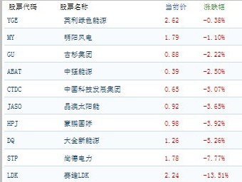 彭博中美股市指數(shù)(CH55BN)中交投最活躍的在美上市的中國企業(yè)已連續(xù)第四個星期下跌,這是六個月以來下跌周期最長的一次。全球第二大硅片制造商LDK的股價跌至歷史最低點。而全球最大的光伏制造商尚德電力的股價則跌落至七個月以來最低水平。