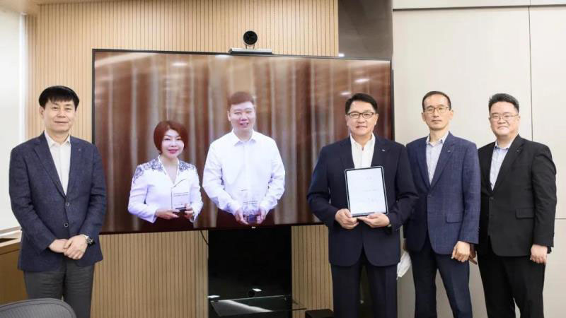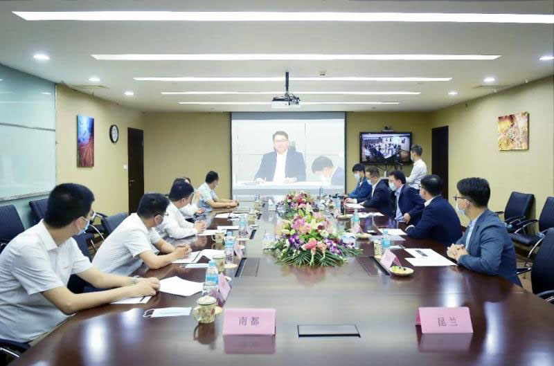 因疫情原因無法面對面溝通,LS電氣集團會長具滋均在韓國總部LS大廈,南都電源朱保義總裁和昆蘭于忠蘭董事長則在LS電氣上海總部,通過在線視頻方式進行“跨國云簽約”。