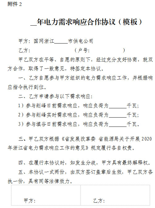 2. 2020年電力需求響應合作協(xié)議(模板)
