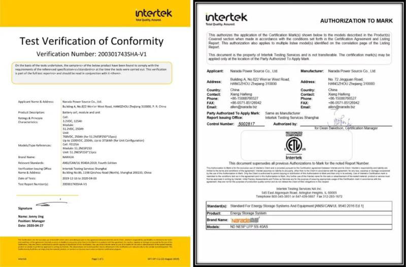 為了配合項(xiàng)目的推進(jìn),南都電源 MW 級(jí)集裝箱式鋰電儲(chǔ)能系統(tǒng)申請(qǐng)并獲得 UL9540 和 UL9540A 認(rèn)證,標(biāo)志著南都儲(chǔ)能系統(tǒng)獲得全球儲(chǔ)能領(lǐng)先標(biāo)準(zhǔn)安全認(rèn)證認(rèn)可,打通了北美儲(chǔ)能市場(chǎng)的綠色通道。