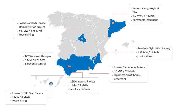 西班牙已經(jīng)開(kāi)通運(yùn)營(yíng)的電池儲(chǔ)能系統(tǒng)分布地圖