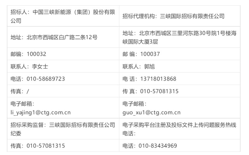 本次招標公告同時在在中國采購與招標網(wǎng)、中國長江三峽集團有限公司電子采購平臺、三峽國際招標有限責任公司網(wǎng)站上發(fā)布。