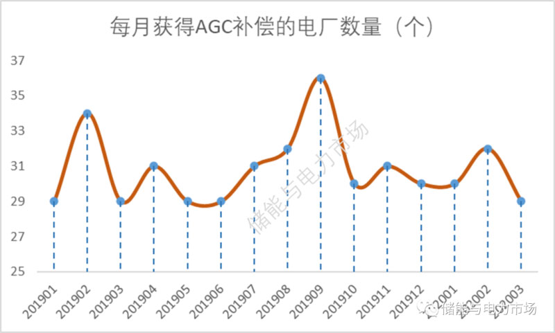 每月獲得過AGC輔助服務(wù)補(bǔ)償?shù)臋C(jī)組平均數(shù)量為31臺(tái),考慮到此為月度數(shù)據(jù),預(yù)計(jì)每日提供AGC調(diào)頻服務(wù)的機(jī)組應(yīng)該為20多臺(tái),和廣東等區(qū)域類似。