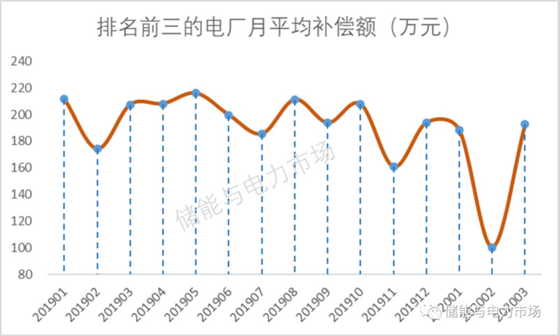 (2)排名前三的電廠月平均補(bǔ)償額190萬元