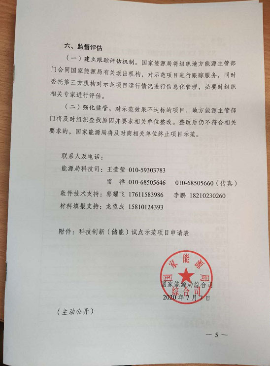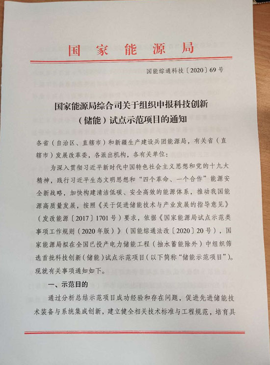 國(guó)家能源局綜合司關(guān)于組織申報(bào)科技創(chuàng)新(儲(chǔ)能)試點(diǎn)示范項(xiàng)目的通知