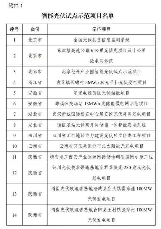 據(jù)工業(yè)和信息化部7月21日消息,為貫徹落實《智能光伏產(chǎn)業(yè)發(fā)展行動計劃(2018—2020年)》(工信部聯(lián)電子〔2018〕68號),經(jīng)省級有關部門推薦、專家評審、網(wǎng)上公示等程序,工業(yè)和信息化部、住房和城鄉(xiāng)建設部、交通運輸部、農(nóng)業(yè)農(nóng)村部、國家能源局、國務院扶貧辦將智能光伏試點示范項目和示范企業(yè)名單予以公告。