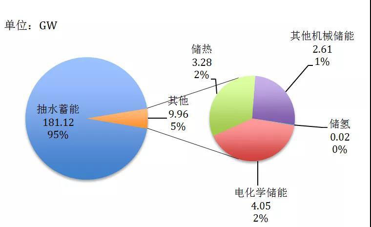 圖1 2020年全球各儲(chǔ)能技術(shù)類型最新裝機(jī)及占比情況