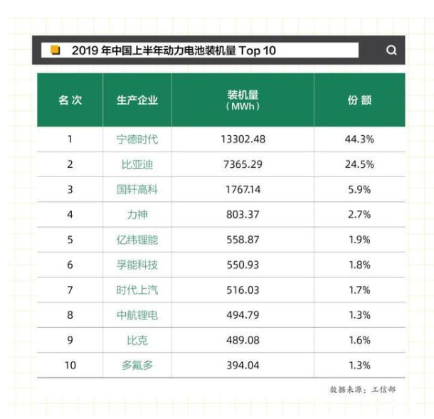 各動力電池企業(yè)在中國新能源汽車市場今年上半年裝機量的基本情況如下: