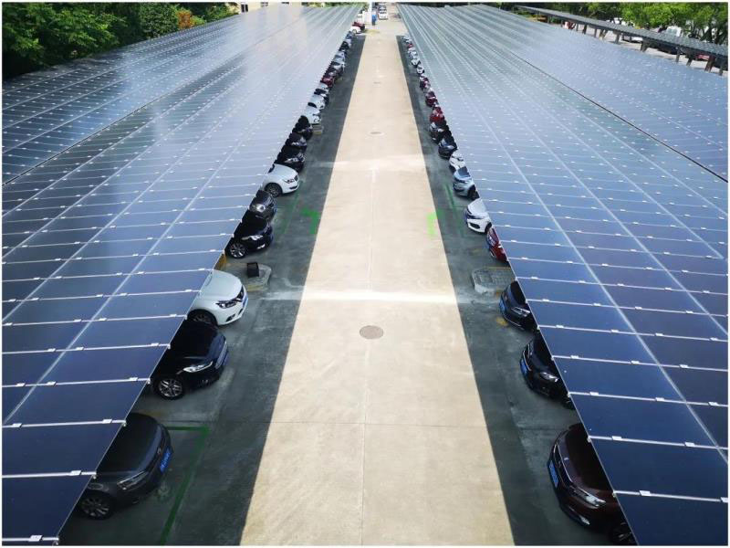 ▲ 位于閔行工業(yè)區(qū)上海電機廠內的薄膜光伏車棚