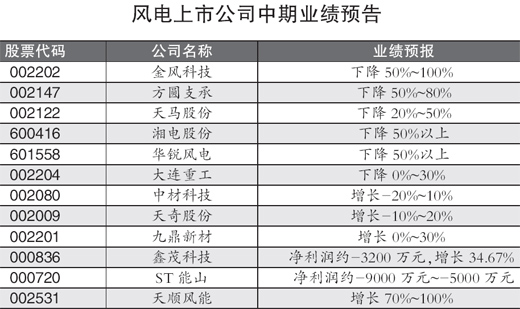 從風(fēng)電上市公司公布的上半年業(yè)績(jī)預(yù)告來(lái)看,經(jīng)過(guò)5年高速發(fā)展的風(fēng)電行業(yè),正在經(jīng)歷一個(gè)明顯的減速期。