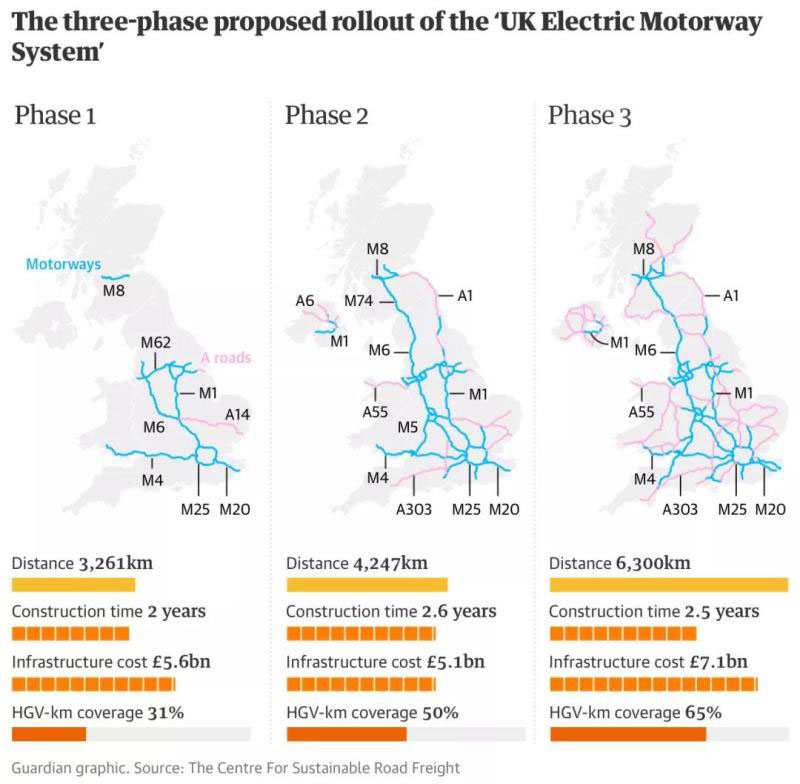 劍橋大學(xué)(Cambridge University)機(jī)械工程教授大衛(wèi)?塞本(David Cebon)表示,與電動道路相匹配的卡車只需要與現(xiàn)有特斯拉(Tesla)汽車相似大小的電池,就能覆蓋英國絕大部分地區(qū)。這項電子高速系統(tǒng)計劃將耗資193億英鎊,到2030年代末,英國除了最偏遠(yuǎn)的地區(qū)外,英國其他地區(qū)都能用得上。這個項目投資效益較好,可望在15年內(nèi)回收。