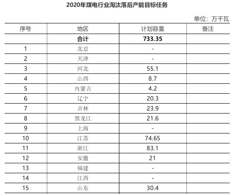 國家能源局發(fā)布關(guān)于下達(dá)2020年煤電行業(yè)淘汰落后產(chǎn)能目標(biāo)任務(wù)的通知稱,2020年全國計(jì)劃淘汰落后產(chǎn)能合計(jì)733.35萬千瓦。淘汰機(jī)組中,凡屬未建成機(jī)組、2015年1月1日后無運(yùn)行記錄機(jī)組,不計(jì)入煤電行業(yè)淘汰落后產(chǎn)能目標(biāo)任務(wù)。列入本年度煤電行業(yè)淘汰落后產(chǎn)能目標(biāo)任務(wù)的煤電機(jī)組,除明確作為煤電應(yīng)急備用電源的機(jī)組外,須在2020年12月底前完成拆除工作。對(duì)于未納入國家年度淘汰落后產(chǎn)能目標(biāo)任務(wù),已停運(yùn)多年、短期內(nèi)不具備恢復(fù)生產(chǎn)條件的“僵尸”煤電機(jī)組,各地要結(jié)合實(shí)際情況,推動(dòng)企業(yè)盡快完成淘汰關(guān)停工作。