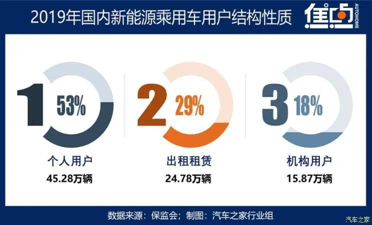再看新能源乘用車(chē)都賣(mài)給了誰(shuí)?以2019年數(shù)據(jù)為例,汽車(chē)之家了解到,個(gè)體用戶、出租租賃、機(jī)構(gòu)用戶是新能源乘用車(chē)采購(gòu)的三大“金主”。