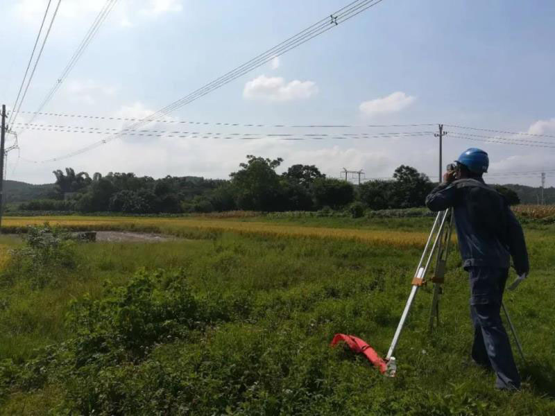 7月10日,超高壓公司梧州局員工冒著酷熱開展電力測繪工作。楊小偉 攝