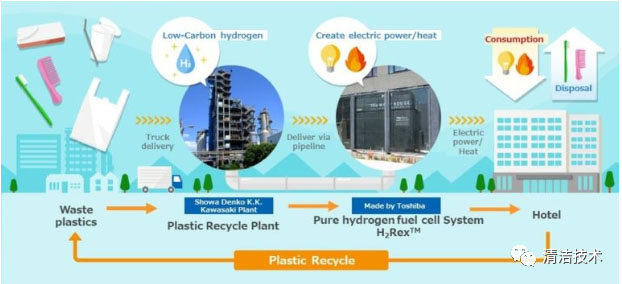 廢塑料處理不僅在日本且在世界各地都是一個(gè)嚴(yán)峻的社會(huì)問(wèn)題,為解決這問(wèn)題,東芝旨在從氫能酒店項(xiàng)目中獲得相對(duì)有利的技術(shù),為全球的廢塑料問(wèn)題提供解決方案。該項(xiàng)目在2019年尾開始啟動(dòng),回收酒店客房已使用的一次性易耗品(牙刷、梳子)作為制備氫的原材料。
