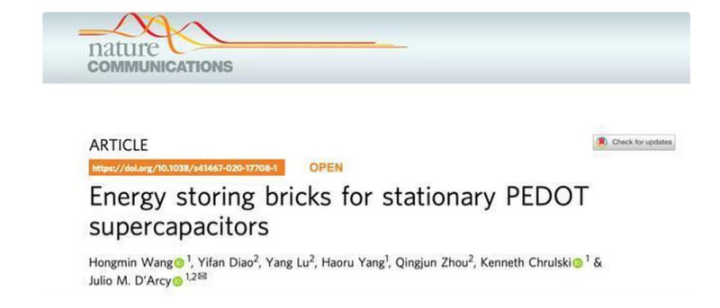 根據(jù)論文的描述,研究人員利用磚的多孔結(jié)構(gòu),通過使用氣相沉積技術(shù)為紅磚添加一層名為 PEDOT 的導(dǎo)電聚合物,從而把紅磚變成一個儲能電極。充電后的儲能磚可以作為超級電容器像傳統(tǒng)電池一樣儲存電能,并隨時為其他裝置供電,由儲能磚砌成的墻可以儲存大量電能。