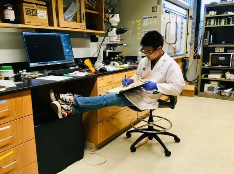 大學(xué)畢業(yè)時,他以第一作者身份發(fā)表了兩篇綜述,并且以第二作者身份發(fā)表了一篇科研論文,這些成果幫助他申請到了美國圣路易斯華盛頓大學(xué)的全獎博士。