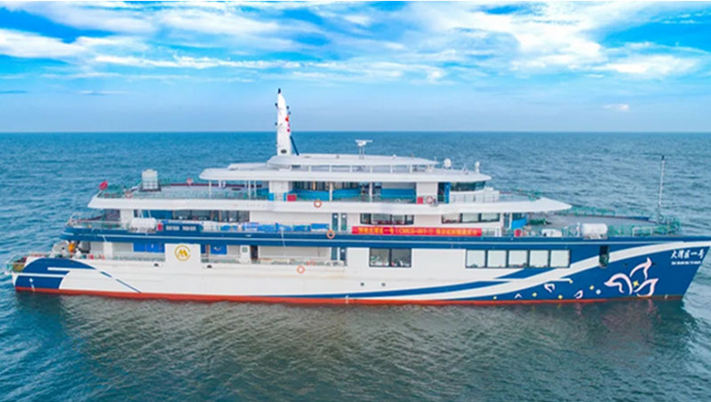 “大灣區(qū)一號”游船采用混合動力直流組網(wǎng)電力推進方式,其裝載的2MW永磁同步發(fā)電機和船舶直流組網(wǎng)變頻配電一體化裝置,移植了高鐵核心技術,可將船舶交流組網(wǎng)升級為直流組網(wǎng),實現(xiàn)柴發(fā)機組的交流電源和動力電池的直流電源的并網(wǎng)供電和功率均衡,有效保障船舶動力穩(wěn)定。而這種混合動力設置,能讓船舶達到“超低排放、超低污染、超低噪音”的標準,給旅客帶來嶄新的靜音舒適體驗的同時,對推動粵港澳大灣區(qū)旅游交通綠色發(fā)展和品質(zhì)提升具有重要示范意義。