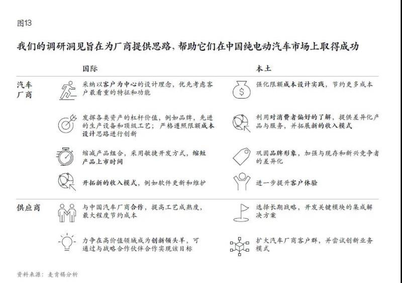 對于供應(yīng)商而言,合作關(guān)系至關(guān)重要。非中國供應(yīng)商可利用成熟的工程技術(shù),成為創(chuàng)新領(lǐng)頭羊。而中國供應(yīng)商或許可通過協(xié)助非中國汽車廠商在市場立足來拓寬自己的客戶群(圖13)。