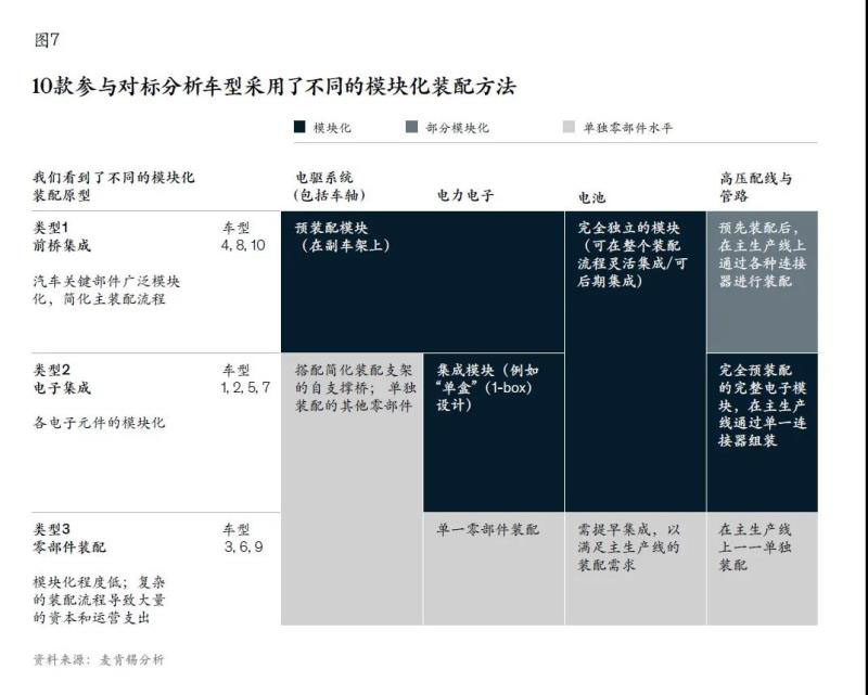 此外,我們觀察到這些汽車廠商均采用一種分組式設(shè)計方式,聚焦于現(xiàn)有概念與制造技術(shù),并使用現(xiàn)成組件。這些做法有助于減少資本支出并加速產(chǎn)業(yè)化(圖6)。