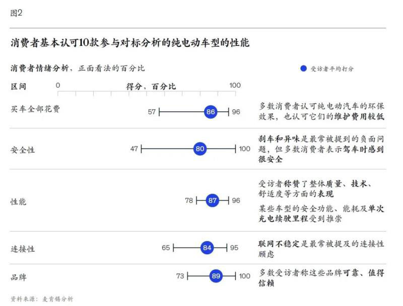許多專為中國消費者設(shè)計的新車型促進了純電動汽車增長,2019年,愿意考慮純電動汽車的消費者比率高達80%。針對10種對標(biāo)車型的消費者態(tài)度分析顯示,消費者的平均認(rèn)可率達到85%,反映出所有汽車廠商都能根據(jù)客戶需求量身定制產(chǎn)品(圖2)。