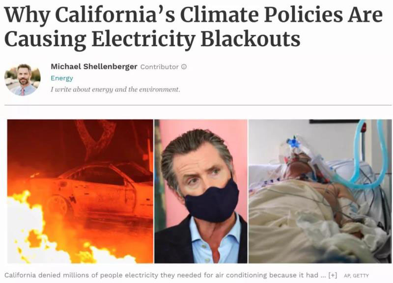 美國《福布斯》雜志發(fā)表署名Michael Shellenberger的文章,題目是Why California’s Climate Policies Are Causing Electricity Blackouts(為什么說是加州的氣候政策導致停電)