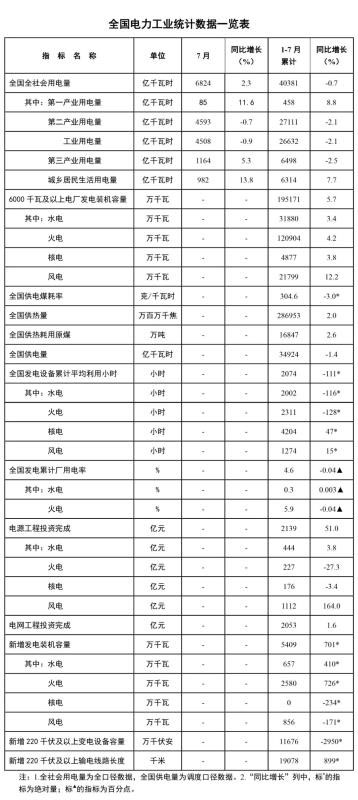 8月20日,國(guó)家能源局發(fā)布1-7月份全國(guó)電力工業(yè)統(tǒng)計(jì)數(shù)據(jù)。