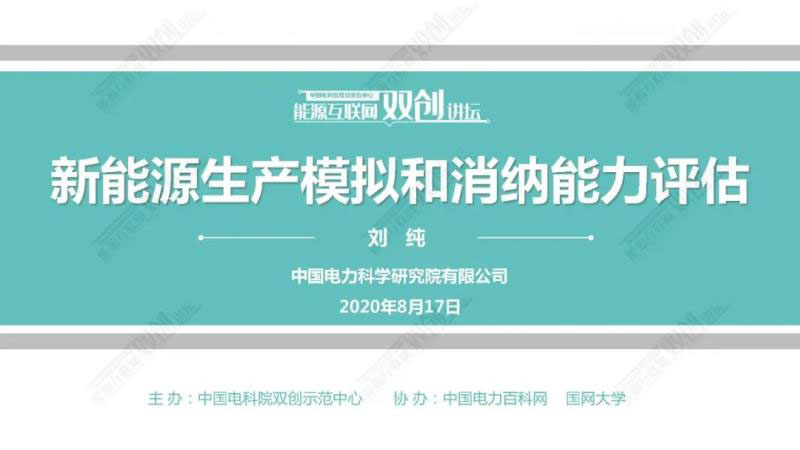 2020年8月17日,在中國電科院雙創(chuàng)中心主辦的能源互聯(lián)網(wǎng)雙創(chuàng)講壇上,中國電力科學研究院首席技術專家劉純主講《新能源生產模擬和消納能力評估》。