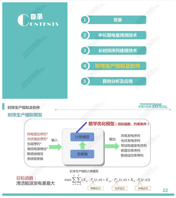 在論壇上,劉純通過中長期電量預測技術、長時間序列建模技術、時序生產模擬及軟件、算例分析及應用等關鍵點詳細闡述了新能源生產模擬和消納能力評估的關系。他表示,隨著新能源裝機的持續(xù)提高,政府主管部門、電網(wǎng)公司以及電源企業(yè)未來難免會遇到各種各樣的問題。從規(guī)劃層面看,在電網(wǎng)規(guī)劃、電源建設、負荷預測、系統(tǒng)運行原則(包括新能源利用率水平)確定的條件下,考慮電力系統(tǒng)運行安全和經(jīng)濟性是個能裝多少的問題。而消納能力則是在新能源資源及并網(wǎng)容量、常規(guī)電源裝機、負荷水平條件下,受電力系統(tǒng)安全穩(wěn)定運行約束下,能發(fā)多少的問題。