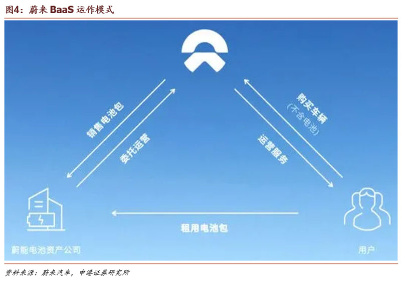 我們認(rèn)為換電模式能夠有效降低購車成本、提高動(dòng)力補(bǔ)充效率、提升品牌粘性,但仍存在技術(shù)及產(chǎn)品不統(tǒng)一、運(yùn)營盈利困難等問題,蔚來推出的BaaS租用電池模式,打開了換電模式的一個(gè)新方向,使得電池使用方式更加靈活,對(duì)于用車年限低于6年的用戶,提供了更為經(jīng)濟(jì)的使用方案。
