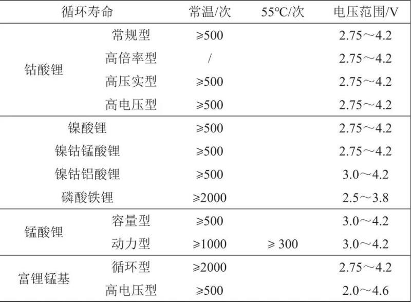 正極材料的循環(huán)壽命與其晶體結構、充放電深度、制備工藝等因素相關。磷酸鐵鋰材料具有穩(wěn)定的橄欖石結構,理論上可以允許結構中的鋰全部脫出,充放電可逆性好,因此表現出優(yōu)異的循環(huán)性能。車用鋰離子電池在實際路況條件下,受電池自身及環(huán)境的影響,溫度會升高到50 ℃以上,因此還需要關注高溫循環(huán)和高溫存儲性能。錳酸鋰在高溫條件下,易發(fā)生Jahn-Teller效應,引發(fā)Mn溶解和晶體結構崩塌。因此YS/T 677—2016《錳酸鋰》標準中,動力型產品設置了55 ℃高溫循環(huán)指標要求。